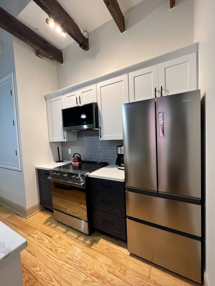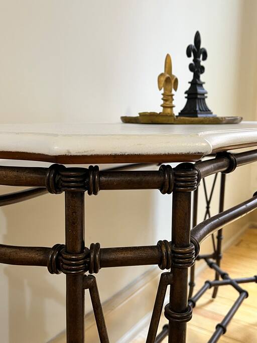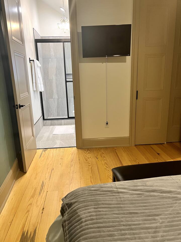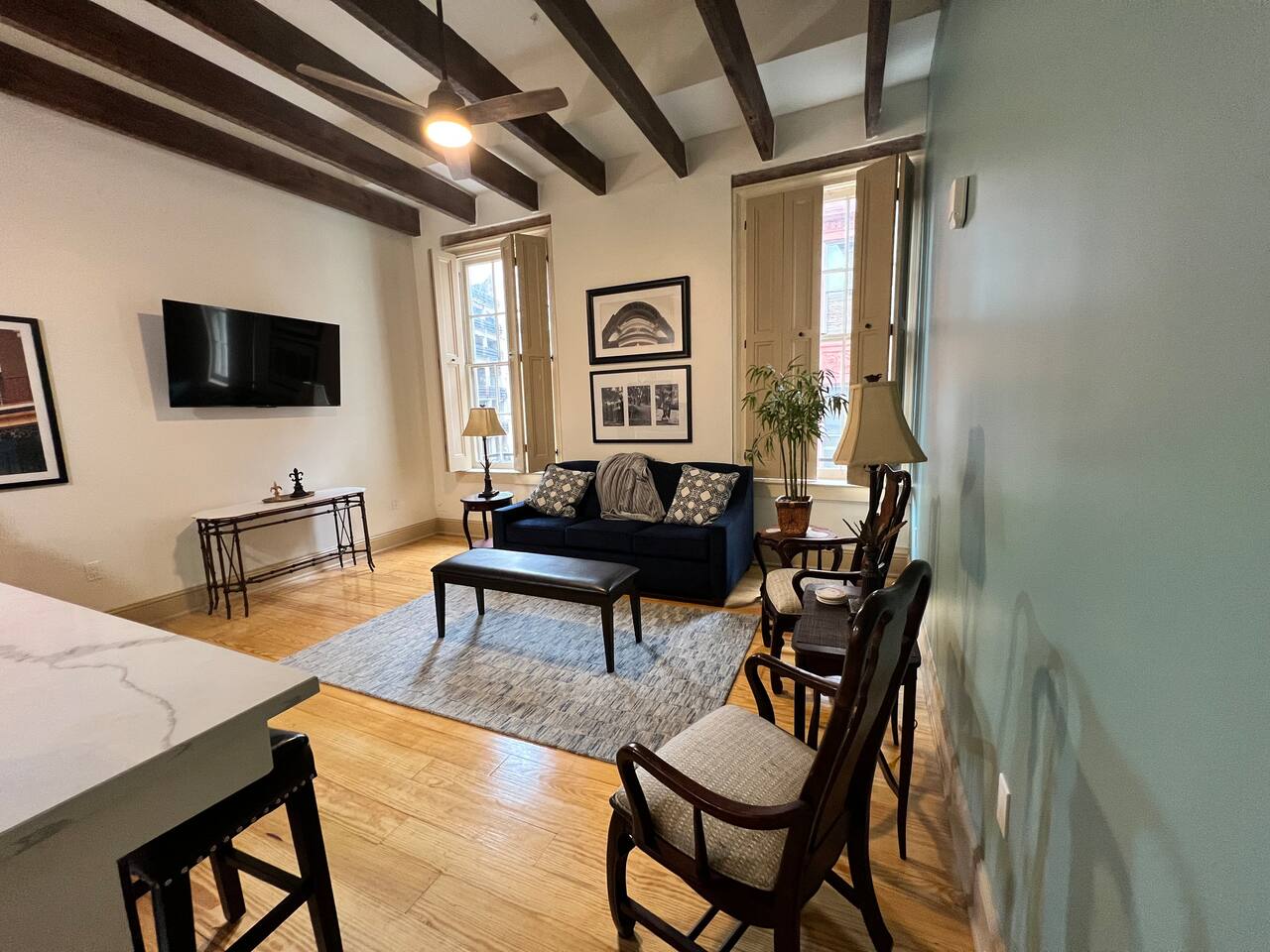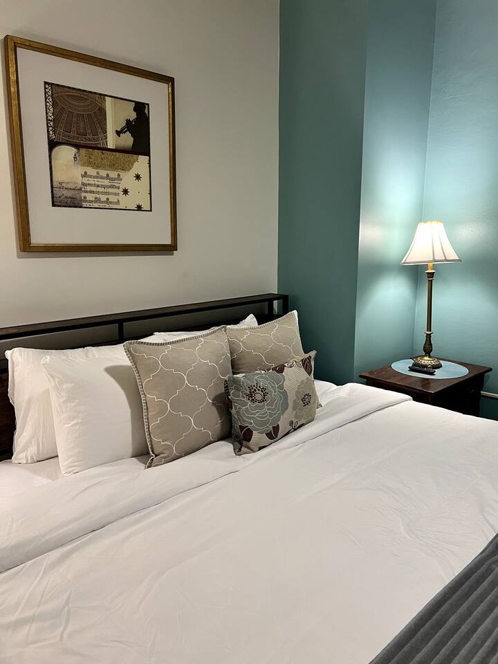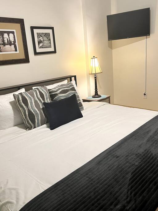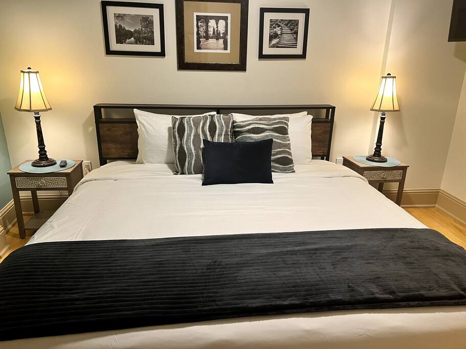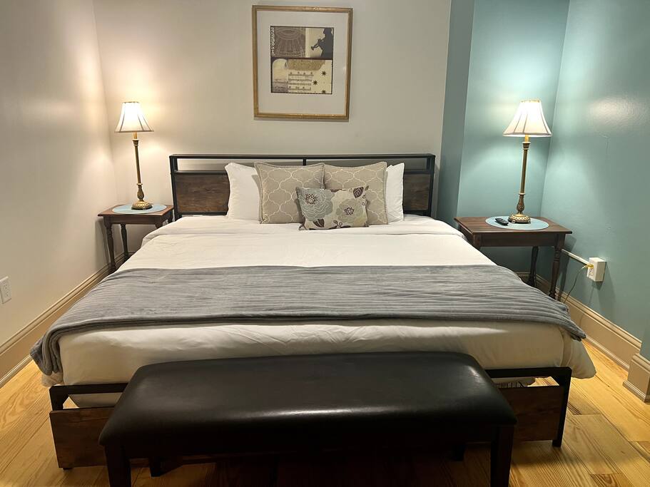 The Space: Experience the charm of our newly renovated property in a historic building originally built in the 1840's. Enjoy original wood floors throughout the livings spaces. Large, original windows that open as well as a small fire escape to get outside. Both bedrooms contain king-sized beds, smart TVs as well as attached bathrooms. Please note: both bedrooms do not have outside windows, which helps reduce the city noise. However, you are in the heart of a vibrant city and it will have traditional noises such as sirens, parades, and other people's celebrations. If noise bothers you, this is not the unit for you. Party-Friendly: Our spaces are ideal for various types of gatherings, including wedding receptions, bachelor/bachelorette parties, graduations, and more. The suite has an open-style floor plan for easy entertaining. In addition, you can add an event in our 1,100 sq foot outdoor patio and 970 sq ft indoor entertainment space. This space is tailor-made for hosting a range of events, including weddings, bachelor/bachelorette parties, graduations, and other special occasions with the ability to host up to 45 people. Immerse yourself in the inviting atmosphere of our updated venue, perfect for creating lasting memories during your significant celebrations. LOCATION: Situated one block from the famed French Quarter, our property, Camp & Commons, is strategically located just blocks away from the renowned Bourbon Street, the Aquarium, Royal St, and other key attractions. Or jump on the street car, also one block away, to enjoy the Garden District, City Park, Audubon Zoo and more. Whether you're keen on exploring the vibrant city of New Orleans or celebrating a special event with family and friends, Camp & Commons offers the ideal setting in the heart of the Big Easy. BEDROOMS: This property sleeps 6 guests in 3 beds. See bed count below: - Bedroom 1: 1 King (Sleeps 2) - Bedroom 2: 1 King (Sleeps 2) - Common Area: 1 Queen Sleeper Sofa (Sleeps 2) Kitchen and Dining: Our kitchen is fully equipped with modern appliances, cookware, and a stylish dining area for enjoying meals together. Whether you prefer cooking a gourmet dinner or ordering from local eateries, you'll find everything you need to make your dining experience enjoyable. Parking: There is a paid parking lot across the street, and a lot of paid parking in the area. Key Features: Two bedrooms Two modern bathrooms Fully equipped kitchen Cozy living area with Smart TV Self Check-In Pet-Friendly Amenities: High-speed Wi-Fi Towels and linens provided Complimentary toiletries Property Highlights: Numerous Room and Stay Options: We offer a variety of room and accommodation options in our building. Select from any of our individual units, or go all out and book multiple units to sleep up to 16 people. Add an event on the rooftop deck to match your group's size and preferences. Ride in Style: Allow us to handle all the logistics! Inquire about our transportation options to safely and conveniently navigate your group around town. Fun and Frolic: Count on us to assist in creating a fantastic schedule packed with thrilling activities and entertainment choices, ensuring the party keeps going strong. Delicious Delivered: Indulge in the convenience of having an in-building restaurant Fleur-de-lis, open for breakfast and lunch. You may also book our private chef for an elevated dining experience for intimate celebrations. Contact us for more details. Elevate the Festivities: Amp up your celebration with our food and beverage packages, complete with drinks, snacks, and more. Get in touch with us, and we'll take care of the delivery and cleanup details.