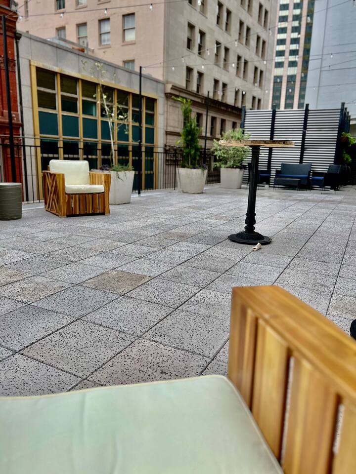 The rooftop for events/celebrations can be rented and is priced separately. Please contact us for more details. Heads up, our spot's in the thick of the action, so it might get a bit rowdy at night. There are two steps down into the hallway and two steps up into two of the unit. Surveillance Camera: We're all about safety, so we've got cameras at the entrances, exits, and outside. No sneak peeks inside – we respect your privacy!